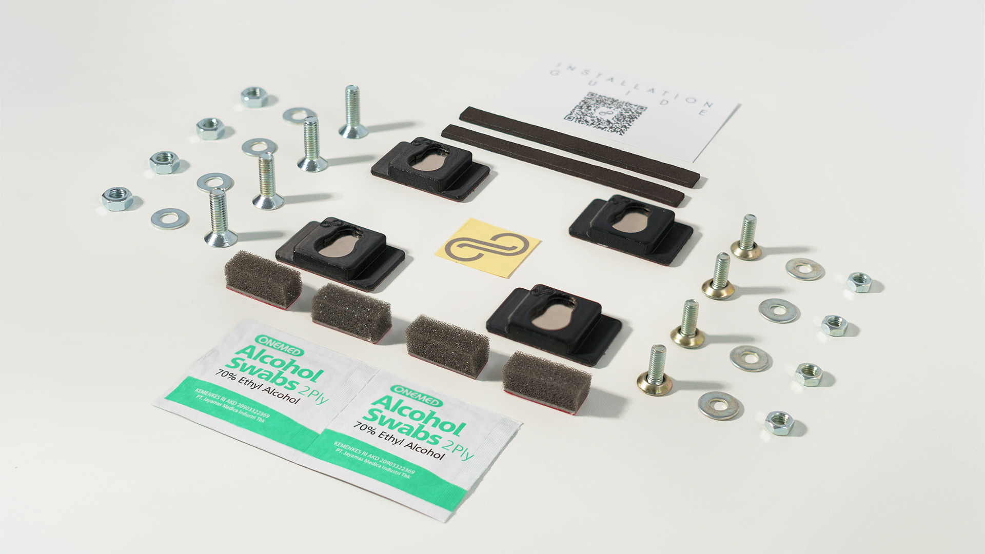 Each HOOK8LOOP set includes everything you need for a clean and easy installation. One set is designed for a single vehicle, with magnetic mounts for both the front and back license plates.